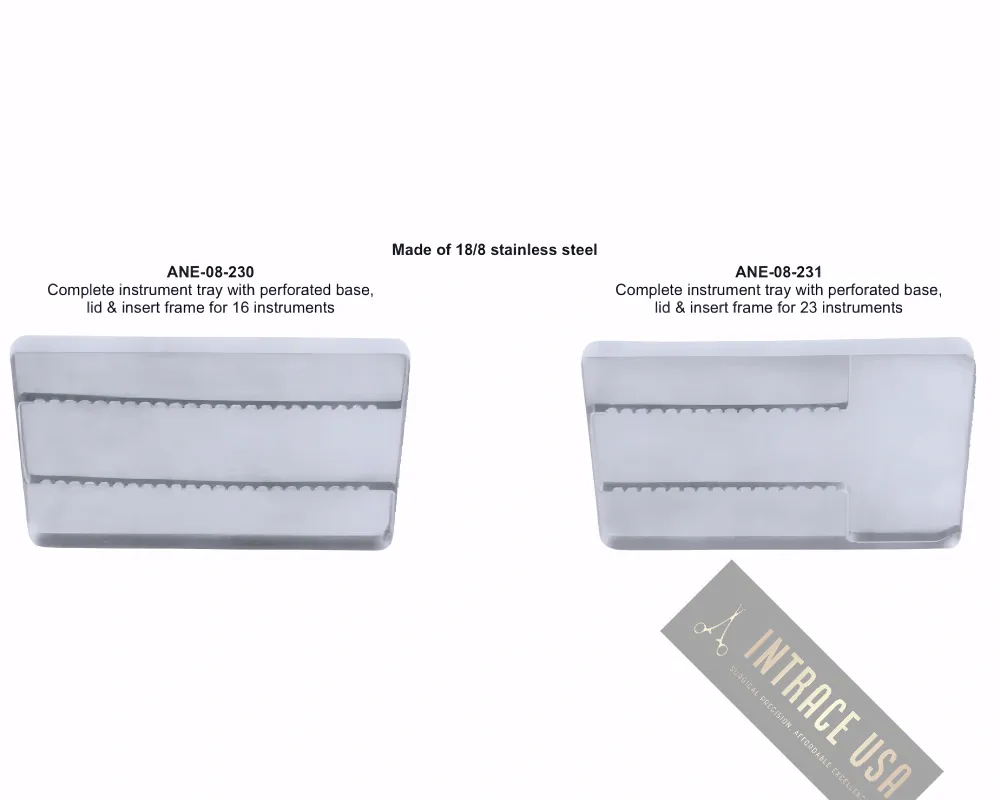 The Complete instrument tray with perforated base, lid & insert frame for 16 instruments by Intrace USA is a versatile neurological and clinical instrument engineered for precision and reliability. Clinicians choose this model because it balances comfortably in the hand and delivers consistent results during examinations. Moreover, Intrace USA manufactures, inspects, and distributes each unit under strict quality controls to ensure dependable performance day after day.