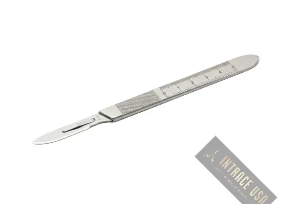 The Marked Scalpel Handle # 3 by Intrace USA provides clinicians with a multi-functional tool designed for precision and immediate intraoperative measurement. Because this model features an integrated centimeter scale on the handle, surgeons accurately measure incisions and tissue specimens without needing a separate ruler. Furthermore, Intrace USA manufactures every Marked Scalpel Handle from premium surgical-grade stainless steel to ensure a secure blade fit and lasting durability. As a result, each unit undergoes a rigorous multi-point inspection at our U.S. facility to guarantee professional-grade performance in every procedure.